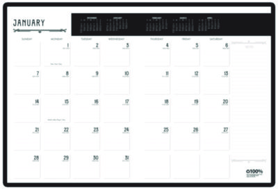 Enjoy the 1920’s art deco period with this monthly planner. This recycled monthly planner features an art deco design on each monthly layout. It is gold wire bound with a black embossed leatherette cover to withstand the daily use throughout the year. Lightly ruled daily blocks keep notations neat. Includes a three-year reference calendar page and a three-year holiday page. Go sustainable with House of Doolittle products, we print on recycled paper with soy-based inks. Wire binding is recycled material and cover is also recycled material. Since 1989 House of Doolittle has donated 5% of its profits to organizations that are working to create a more sustainable environment.