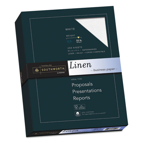 Southworth® 25% Cotton Linen Paper captures the rich texture and feel of natural linen. This richly textured, cotton-fiber paper is ideal for letterheads, reports, presentations and legal documents—anywhere a distinctive look and feel is a must. Get personal with paper! Your choices say a lot about you and your business. The Southworth® collection of business papers is truly among the finest papers available for professional offices of any size. Communicate in style—from the first moment to enduring memory, cotton paper adds a touch of class, making first impressions more impressive with a distinct crispness and an unmistakable feel. Someone picking up your document will know, before they even read a single word, that there’s something special to it. Cotton fiber also provides archival durability—it’s the reason so many historic documents are still with us even centuries later.