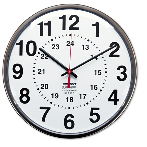 6645013428199 SKILCRAFT 12/24 Hour Slimline Quartz Wall Clock, 12.75" Overall Diameter, Black Case, 1 AA (sold separately)