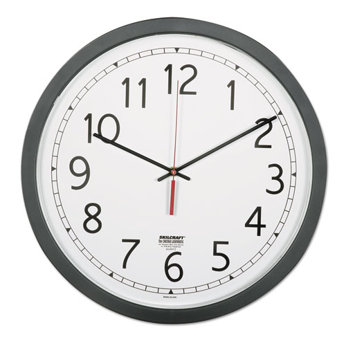 6645016238824 Skilcraft Quartz Wall Clock, 16.5" Overall Diameter, Black Case, 1 Aa (sold Separately)