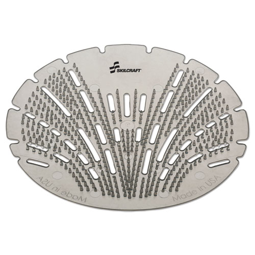 Prevent splashback and cross-contamination in areas outside the restrooms with SKILCRAFT® Pearl 3D Urinal Screens. Contains more fragrance than traditional screens to provide continuous scent for up to 45 days. Flexible screen is much stronger than traditional vinyl urinal screens. Translucent screens keep drains visible while collecting debris to prevent clogs. Safe for use in waterless urinals.
