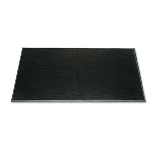The first mat in the three-mat system; place at the outside entrance to prevent soil and water from entering the building. Protects flooring from costly damage while also guarding against falls caused by dirty, wet or slippery floors. Beveled edges reduce tripping hazard. Slip-resistant backing holds mat firmly in place.