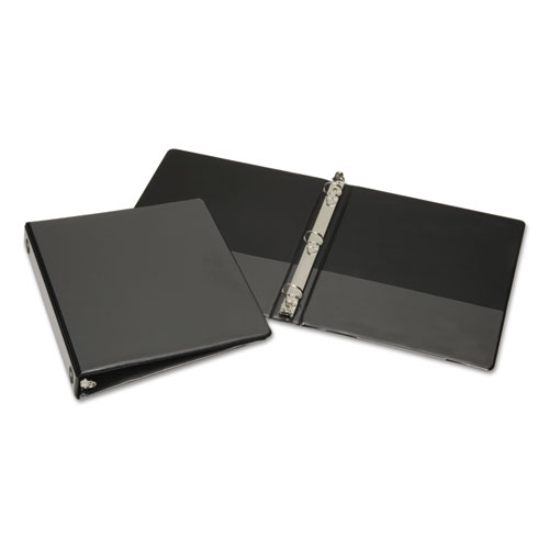 Vinyl binders with clear overlay on the front, spine, and back covers are ideal for presentations. The clear overlay allows for easy customization. Three round-rings accommodate 11” x 8-1/2” punched paper. Pockets on the inside of the front and back cover for storing unpunched and loose papers. Quality construction with heavy-duty vinyl covers resists tearing and cracking. Meets CPG guidelines. BPA free. Includes sheet lifters.