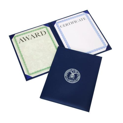 7510017145932, SKILCRAFT Awards Certificate Padded Cover Binder, USAF Seal, 9.12 x 11.62, Blue/Silver