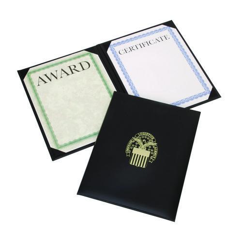 7510017145934, SKILCRAFT Awards Certificate Padded Cover Binder, DLA Seal, 9.12 x 11.62, Black/Gold