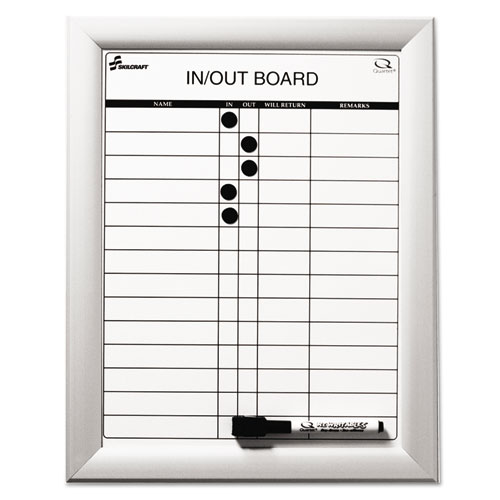 7520014845261 SKILCRAFT Quartet Magnetic In/Out Board, Up to 14 Employees, 11 x 14, White Surface, Anodized Aluminum Frame