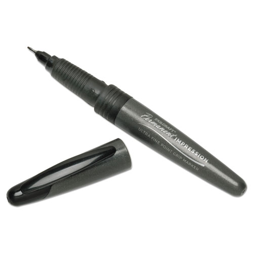 Perfect for writing, drawing or lettering on plastic, glass, metal, rubber, wood and more. Durable tip for extended use. Popular point sizes include ultra-fine for precise lines, and fine for bolder lines. Smear-proof ink is fade resistant and water-resistant. Stylish barrel features a rubber grip for writing comfort. Comes complete with a cap and pocket clip.