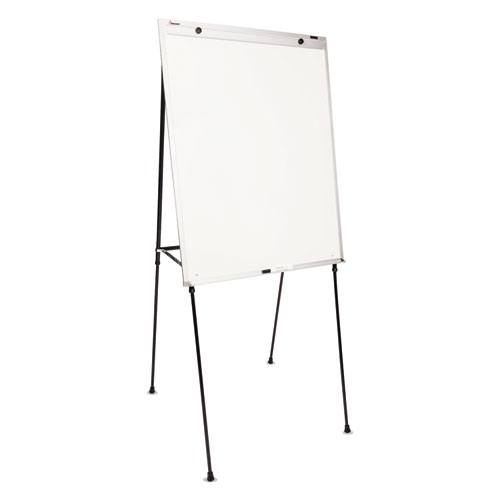 Four sturdy steel legs adjust from 40 to 70" in height for both tabletop and free-standing use. Rubber feet prevent skidding while protecting surfaces. Melamine dry-erase writing surface features an adjustable silver-aluminum frame with a spring-loaded flip chart holder. Recommended for light use. Clean regularly for best results.