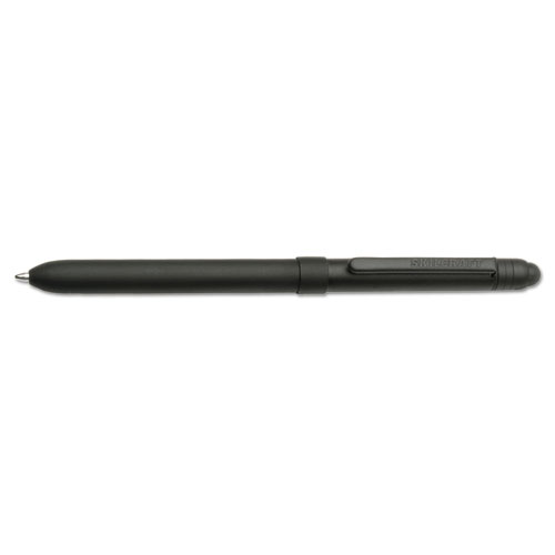 Special slim design fits flight suit and military uniform pockets, this medium-point 3-in-1 twist pen comes with two different colored ink, a 0.5 mm pencil with eraser and Stylus for capacitive touch screens. Featuring non-reflective flat black finish on a metal barrel, this pen is FOD compliant for cockpit and ramp safety.