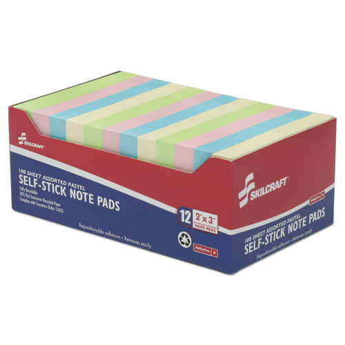 7530013982660 SKILCRAFT Self-Stick Note Pad Set, 2" x 3", Assorted Colors, 100 Sheets/Pad, 12 Pads/Pack