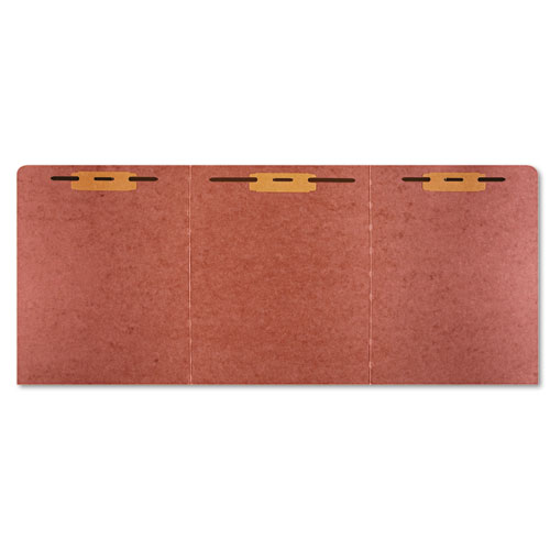 Heavy-duty 17 pt. folder features one 1 1/2" fastener on side section and one 2 1/2" fastener on center section.
