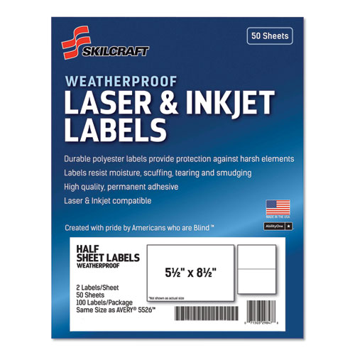 7530016736219 Skilcraft Weatherproof Mailing Labels, Laser Printers, 5.5 X 8.5, White, 2/sheet, 50 Sheets/pack
