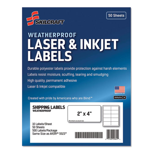 7530016736220 Skilcraft Weatherproof Mailing Labels, Laser Printers, 2 X 4, White, 10/sheet, 50 Sheets/pack