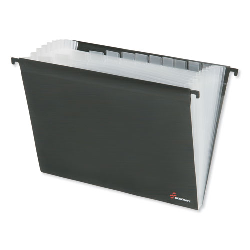 7530016819291 SKILCRAFT Polypropylene Hanging File Folders, 13 Sections, 12" Capacity, Letter Size, 1/12-Cut Tab, Black/Clear