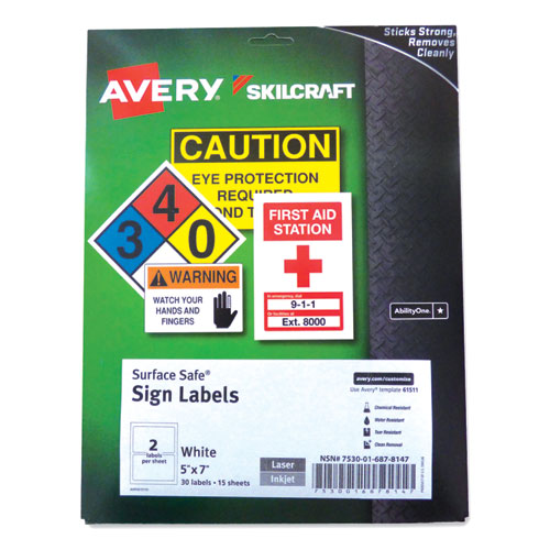 Maintain compliance and warning signs without breaking your budget with SKILCRAFT®/AVERY® Surface Safe® Sign Labels. Made of durable, professional-grade materials that stick securely, remove cleanly, and resist water and chemicals. Compatible with laser and inkjet printers.