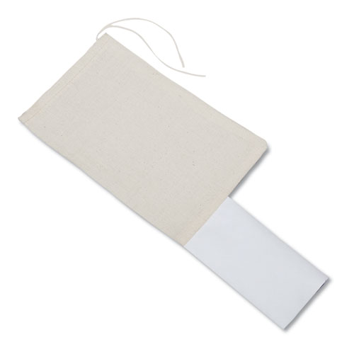 Unbleached, all natural cotton mailing bag is designed for sending small, unbreakable items such as parts, bolts, nuts, or screws. Bag features a drawstring closure to secure enclosed items and a cloth-lined paper address tag for shipping information.