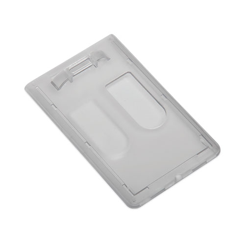 Keep IDs and smart cards visible yet secure and accessible with the SKILCRAFT® Dual Card ID Holder. Clear rigid holder with slot and chain holes are designed for easy attachment to lanyards, strap clips and badge reels. Holder can accommodate two standard size credit cards, IDs, or smart cards. Choose vertical orientation with top-load design or side-loading vertical/horizontal orientation.