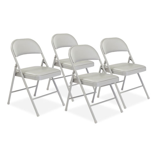 950 Series Vinyl Padded Steel Folding Chair, Supports Up to 250 lb, 17.75" Seat Height, Gray, 4/Carton, Ships in 1-3 Bus Days