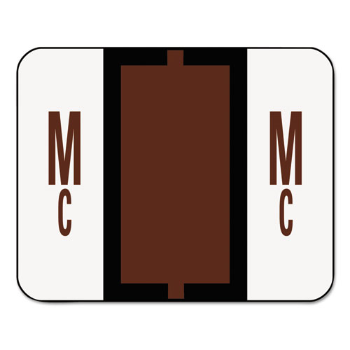Keep files organized at a glance with these alphabetic labels that feature a wraparound solid color bar and a colored character printed on a white background. Colors are compatible with end tab systems using the bar-style format. Convenient dispensing box for easy peel off and application. Includes 500 labels per roll. Compatible with Tab® Products 1283 series alphabetical labels.