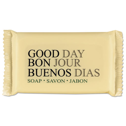 Pamper your guests without zapping your budget with high-quality, value-priced Good Day™ soap. A rich, luxurious lather and a pleasant, neutral scent lends it a spa-like appeal. Specially formulated wrapper protects bar from moisture and humidity. Trilingual: English-, Spanish- and French-text packaging.
