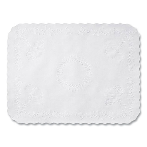 anniversary embossed scalloped edge traymat, 14 x 19, white, 2,000/carton