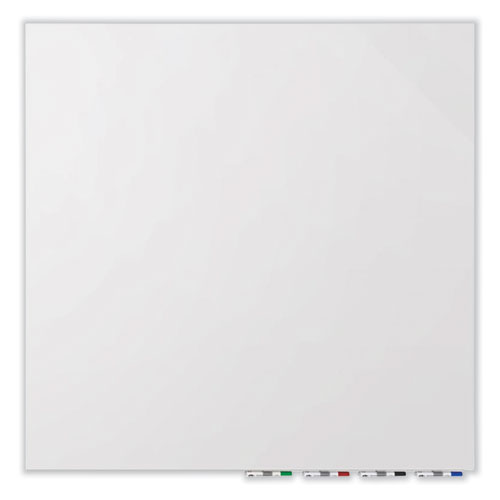 Aria Low Profile Glass Whiteboard achieves the look of weightless, floating glass. No visible hanging hardware or stand-offs allow the beauty of the frameless glass to complement any décor creating an unobstructed writing surface. A team of engineers developed the heavy-duty hanging system that promotes security and confidence in the installation of your low profile glass whiteboard. With Aria glassboards, you can be confident your board will never bow, strain, or move from the wall. Aria can be hung on a variety of surfaces including, but not limited to, drywall, concrete and brick surfaces. Aria can be used as a single board for personal offices and conferences rooms, or create a glass whiteboard wall by lining up multiple glassboards in a row. Aria is constructed using premium 0.25 tempered glass and when installed, floats just 0.5 from the wall. The lower steel support bar doubles as integrated magnetic marker storage, keeping the writing surface free from clutter. Ships to you in Ghent's worry-free packaging, designed specifically for shipping whiteboards. Comes with four markers and an eraser.