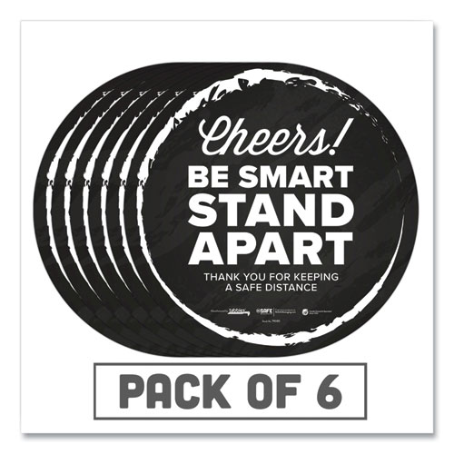 Besafe Messaging Floor Decals, Cheers;be Smart Stand Apart;thank You For Keeping A Safe Distance, 12" Dia, Black/white, 6/ct