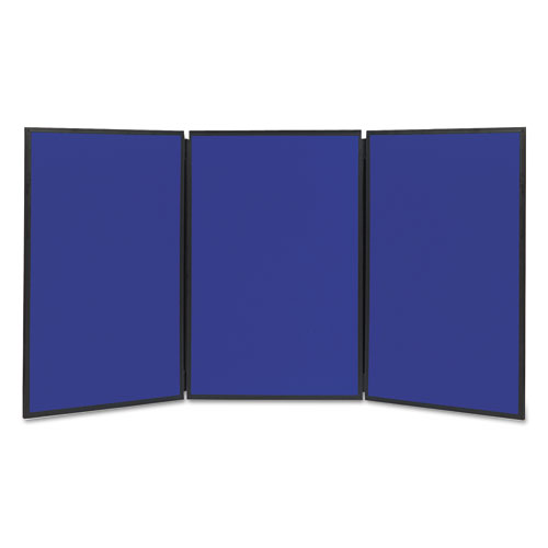 Show-It! Three-Panel Display System, 72" x 36", Blue/Gray Surface, Black PVC Frame