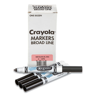 Order your favorite Crayola Marker color in bulk! Conveniently packaged in a reusable tuck box, each set contains 12 of the same color. With its conical tip, the Crayola Broad Line Marker is a versatile drawing tool. Perfect for coloring in large areas, these markers are also great for drawing thin lines or dots. Kids can even create a ribbon effect with lines that taper from thick to thin. Broad line markers lay down plenty of color and won't smudge or bleed through paper. Great for classrooms, art studios, and more!
