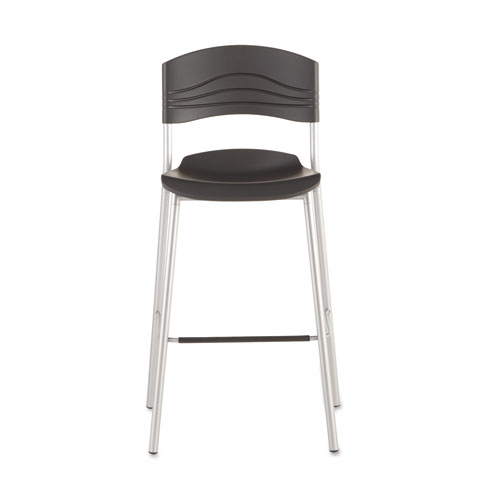 CafeWorks Stool, Supports Up to 225 lb, 30" Seat Height, Graphite Seat, Graphite Back, Silver Base