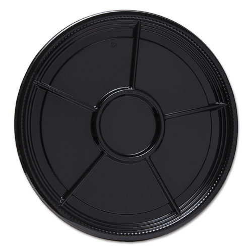 Caterline Casuals Thermoformed Platters, 6-Compartment, 16" Diameter, Black, Plastic, 25/Carton