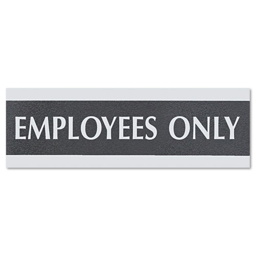 Century Series Office Sign, Employees Only, 9 X 3, Black/silver