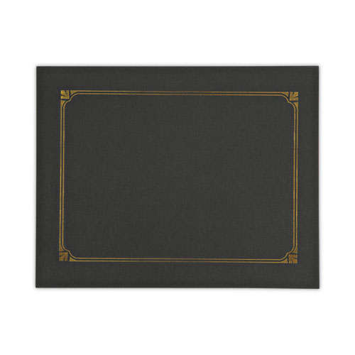 This premium document cover provides an elegant touch to any certificate or award presentation. The heavy-duty cover features a linen textured finish and a gold foil border design for a classic and elegant look. Includes die-cut tabbing to hold 8.5" x 11", 8" x 10" and A4 certificates. Includes link to create custom award certificates. Overall size is 125" x 9.75".