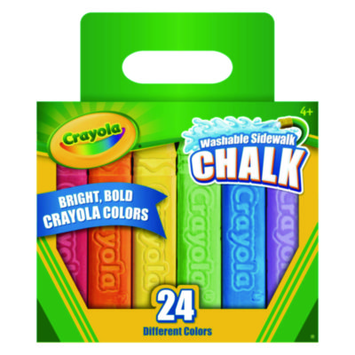 Bright, bold sidewalk chalk that includes exclusive Crayola® crayon colors, washes away with water. Create big outdoor art on sidewalks and driveways with easy clean-up. The anti-roll shape keeps sticks handy and produces fine lines or broad strokes. These chalks can be used with other Crayola® outdoor chalk tools.