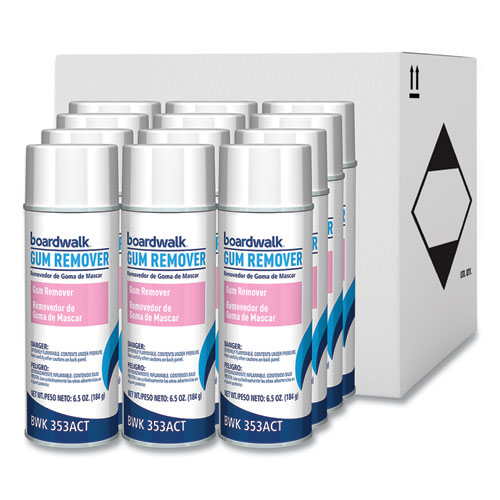 Boardwalk® Chewing Gum and Candle Wax Remover helps remove unsightly, messy gum and candle wax residue by freezing for easy removal. Tackle stubborn messes from gum and candle wax with an easy-to-use aerosol spray. Can be sprayed directly onto the surface. For use on tables, chairs, floors, and nonporous surfaces. Also works on ceramics, fiberglass, finished wood, glass, laminates, metal, plastic, and vinyl. Unscented, liquid cleaner.
