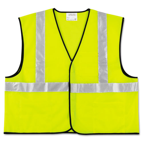 Class 2 Safety Vest, Polyester, Large Fluorescent Lime with Silver Stripe