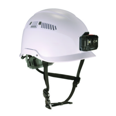 Class C Safety Helmet with LED Light and Adjustable Venting, 6-Point Rachet Suspension, White, Ships in 1-3 Business Days