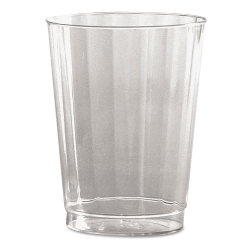 These clear plastic tumblers feature an elegant fluted design. Rigid plastic offers the strength and beauty of glassware. Provide a tasteful upscale appearance to any surroundings. They are disposable and offer all of the appeal of glass without the clean-up.