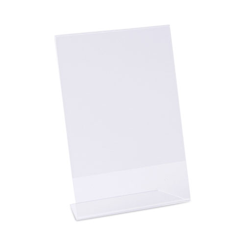 Universal® Clear L-Style Freestanding Frame is ideal for schools, restaurants, reception areas, and just about anywhere you'd like to display important information. The freestanding, angled L-style design ensures easy-viewing while enabling both horizontal and vertical display orientations. An economical frame that is made entirely of durable, shatter-proof material. Keeps photos and documents on display clean and protected from wear and stains.