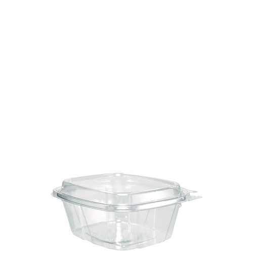 No matter what's inside, these containers keep your food safe, secure and looking good! Designed to prevent tampering without shrink bands or extra wrapping, our containers make sharing food easy. Keep contents fresh and prevent leaks with the secure perimeter seal. The tamper alert hinge has a visible seal that, if broken, makes it obvious the container has been opened. The specialty lid inhibits the ability to lift it from the base without tearing the hinge. Once the seal is broken, the now two-piece container is easy to re-close and continues to be leak-resistant. Make sure your food is the star of the show thanks to the crystal-clear material. Merchandising and delivery is a breeze the sturdy stackable design. They're even great for at-home use. Transport salads, fruits, or desserts to your next picnic, potluck, or bake sale.