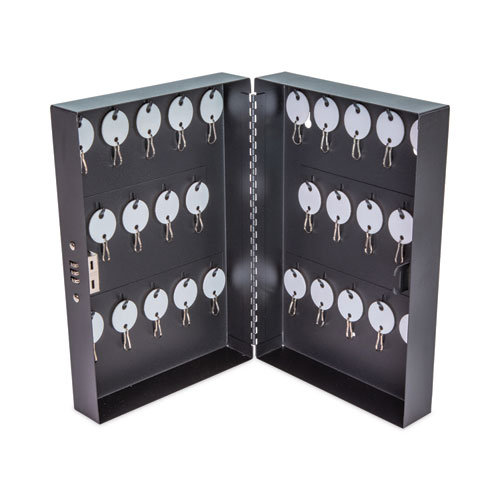 Combination Lockable Key Cabinet, 28-Key, Metal, Black, 7.75 x 3.25 x 11.5