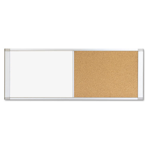 Combo Cubicle Workstation Dry Erase/Cork Board, 48 x 18, Tan/White Surface, Aluminum Frame