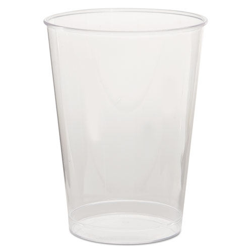 The clear plastic of these tumblers makes them look just like glass. Their rigid, hard plastic provides a sturdiness and strength that glass lacks. They offer the classic look of glass with the convenience of a disposable. They are perfect for serving beverages at parties.