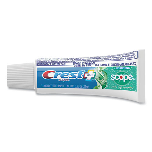 Minty fresh toothpaste combines the whitening power of Crest® toothpaste with the freshening power of Scope® mouthwash. Fights cavities and prevents tartar. Provides cleaning action to help remove surface stains. Refreshing minty taste.