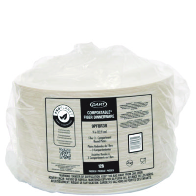 Compostable Fiber Dinnerware, ProPlanet Seal, 3-Compartment Plate, 9" Diameter, Ivory, 500/Carton