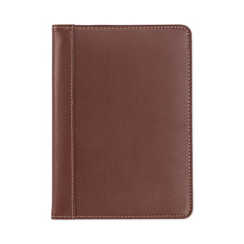 Contrast Stitch Leather Padfolio, 6.25w x 8.75h, Open Style, Brown