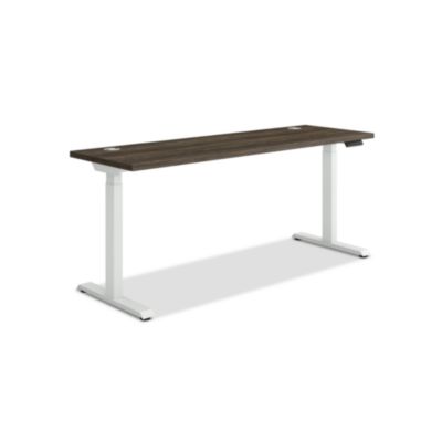 Whether you want to stand tall or sit tight, you need a desk that's as adaptable as you are. This HON Coordinate height-adjustable desk automatically adjusts to your desired height to stay focused and flexible without sacrificing style and comfort. The durable, easy-to-clean laminate top includes generous surface area to keep you productive, organized, and focused. The 2-stage design base includes standard collision detection to protect surroundings.