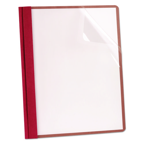 Earthwise By Oxford 100% Recycled Clear Front Report Covers, 3-Prong Fastener, 0.5" Capacity, 8.5 X 11, Clear/red, 25/box