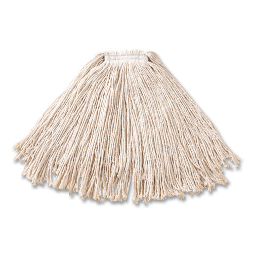 Cut-End Cotton Wet Mop Heads, Cotton/Plastic, White, 12/Carton