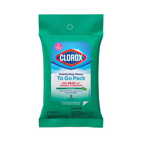 Disinfecting Wipes, To Go Pack, 1-Ply, 6.53 x 2.79, Fresh Scent, White, 9/Pack, 24 Packs/Carton